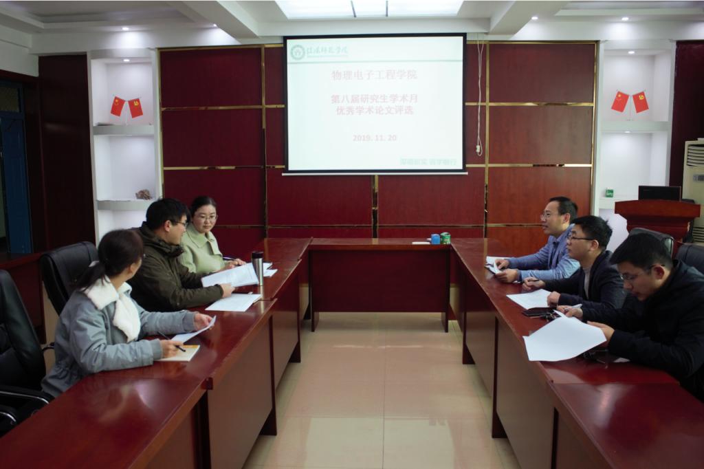 11月27日下午,在理科楼南楼501会议室举行学术分论坛和学术明星评选两场活动。首先举办的是学术分论坛活动,11位同学经过PPT汇报,现场答辩。评委们根据表现情况,依据评分细则,评出王莹珲、赵奕光2名同学获一等奖并参加学校决赛,许景焜等3名同学获二等奖,周勇洁等6名同学获三等奖。随后,开展了学术明星评选活动,评出王莹珲、郭威2名同学参加学校学术明星评选。