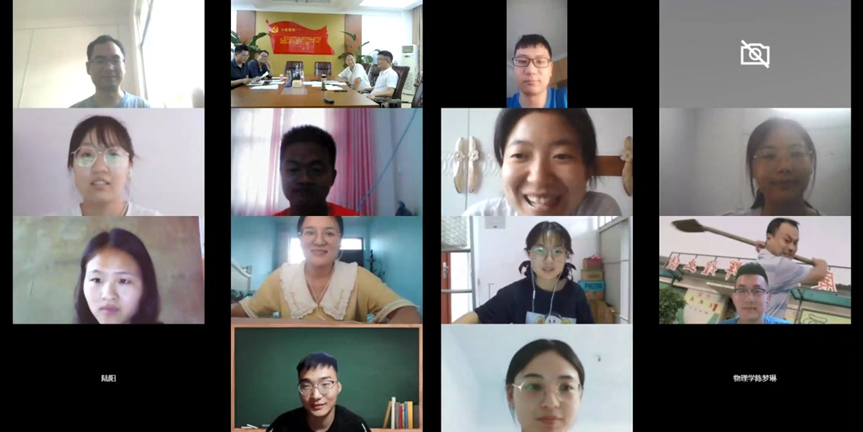 6月23日下午,我院举行2020级物理学专业硕士研究生中期考核答辩会。根据学校要求,本次中期考核会采用线上线下混合形式进行,校外学生通过腾讯会议形式线上参加,校内教师于理科楼北911会议室线下参加。考核会专门邀请陈新武教授、孙海斌副教授、陆阳副教授等专业教师作为考核评委进行把关。参与本次考核研究生有14名,中期考核会由副院长刘墨林主持,全体2020级物理学专业研究生及部分其他年级研究生参加会议。