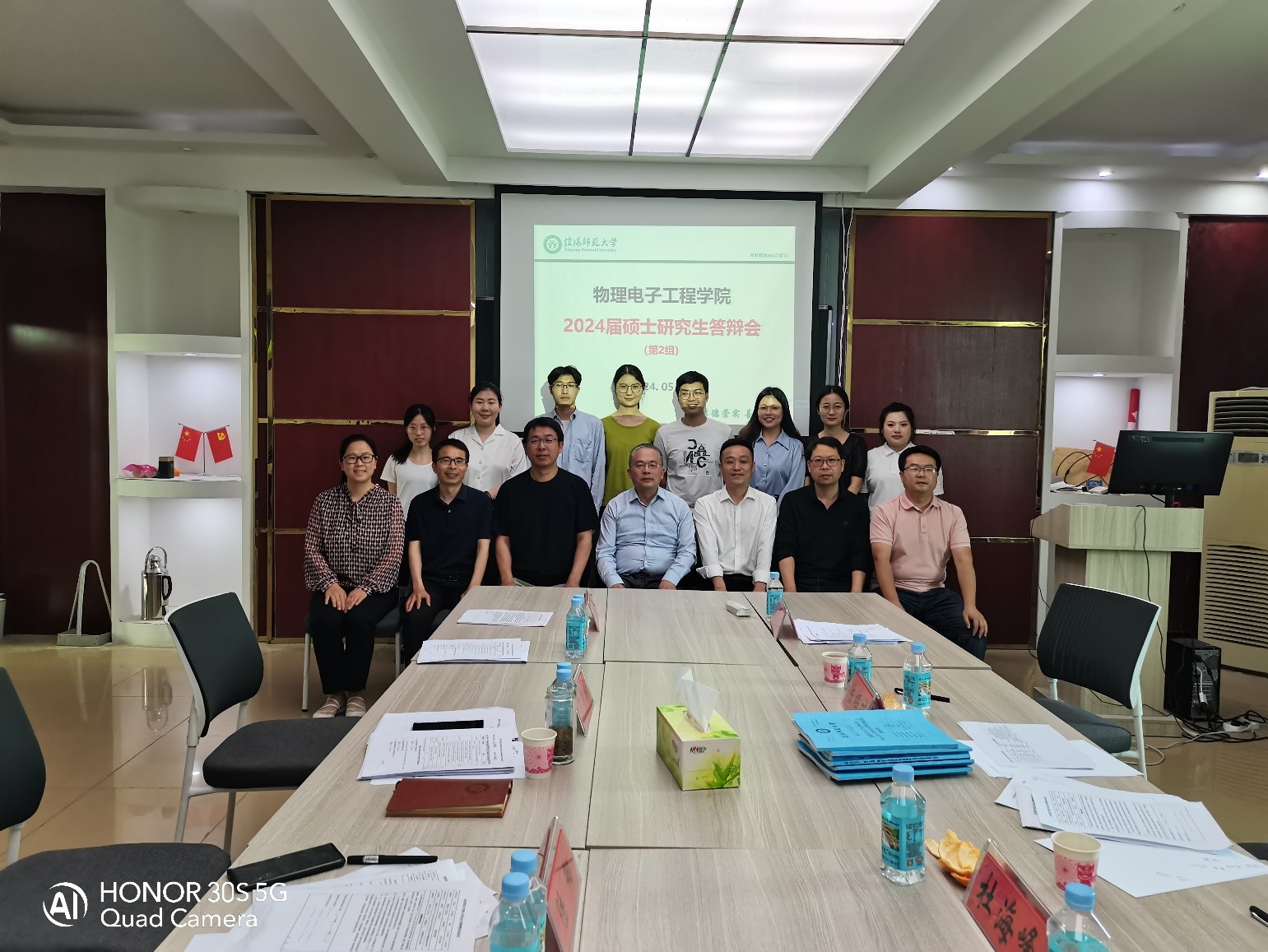按照学校和学院研究生学位授予工作安排,我院于5月18日上午举行2024届硕士研究生学位论文答辩会。为提高学位论文答辩和学位授予质量,本次答辩会特邀请华中科技大学物理学院陆培祥教授、中国科学技术大学物理学院陈京教授、中国科学院强磁场科学中心杜海峰研究员、华中科技大学脉冲强磁场中心李小康教授、安徽师范大学物理与电子信息学院汪志荣教授、河南师范大学物理学院陈运保教授、信阳市基础教研室高级教师杨辉、信阳市高级中学高级教师左刚武等校内外专家学者组成答辩委员会,陆培祥、陈京、陈运保、汪志荣作为本次答辩主席对研究生毕业答辩进行指导。
