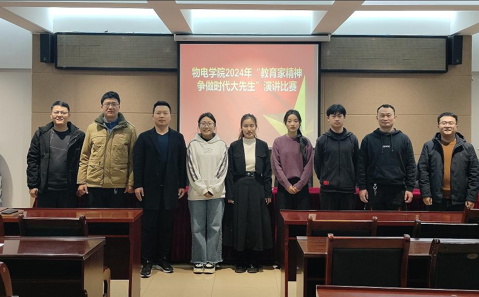 12月2日下午,物电学院2024年硕士研究生“弘扬教育家精神,争做时代大先生”演讲比赛在理科楼连廊402举办,比赛邀请了畅宁波副教授、陈瑞博士、赵华博士、刘宇洋博士、徐昱博士担任评委。来自学科教学(物理)和电子信息专业的4名学生参加了比赛。在比赛过程中,每位选手都用真挚的情感和生动的案例,传达了对教育事业的热爱和对学生未来的关心。经过激烈的初赛选拔,最终24级学科教学(物理)班胡晓珂脱颖而出,进入校决赛。