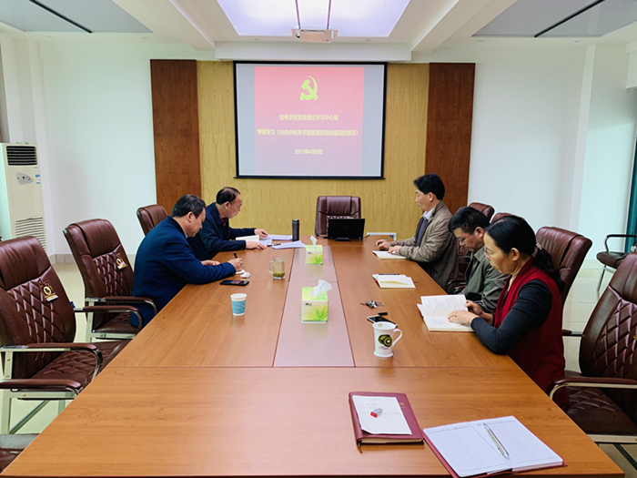 4月9日下午,物电学院党委理论学习中心组在理科楼北楼911会议室专题学习《中共中央关于加强党的政治建设的意见》。学院党委书记柳士刚主持学习会,学院党委理论学习中心组成员参加了会议。