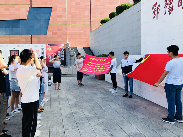 同日,物电学院组织了学生五个支部的党员、预备党员到鄂豫皖革命纪念馆参观学习,在讲解员的带领下,先后参观了“千里跃进将军故里”、“红色苏区,共铸辉煌”、“红色土地,艰苦卓绝”、“中原突围,铁流千里”等七个展厅,党员们仔细观看了文字、图片、实物等珍贵历史资料,认真聆听讲解员讲解,回顾了鄂豫皖革命根据地波澜壮阔的光辉历史,缅怀了革命先烈们的丰功伟绩。最后,党员们重温了入党誓词,新吸收预备党员进行了入党宣誓。通过支部党日活动,教育引导学生党员不忘中国共产党人“为中国人民谋幸福、为中华民族谋复兴”的初心和使命,进一步激发学生党员更加自觉地为实现新时代党的历史使命不懈奋斗。(物电学院 张康华/供稿)