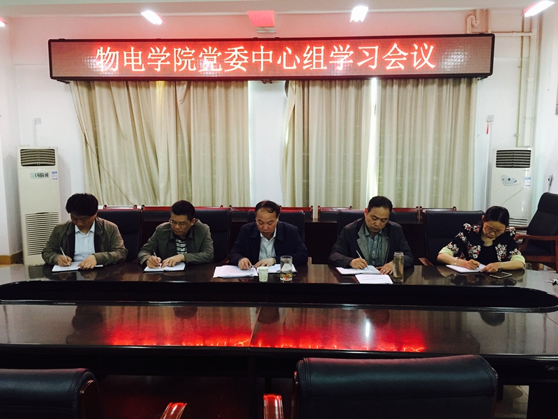 5月5日,物电学院党委中心组在理科楼911会议室召开集中学习会议,学院党委书记柳士刚、副书记李刚、副院长孙宜海、仓玉萍、院长助理龚克参加了会议,会议由柳士刚主持。
