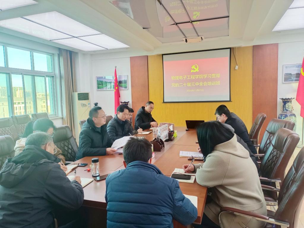 11月29日,我院在理科楼911会议室举行了学习贯彻党的二十届三中全会精神培训班开班仪式。学院党委领导班子、科级干部和党支部书记参加了培训班启动仪式暨开班第一课。