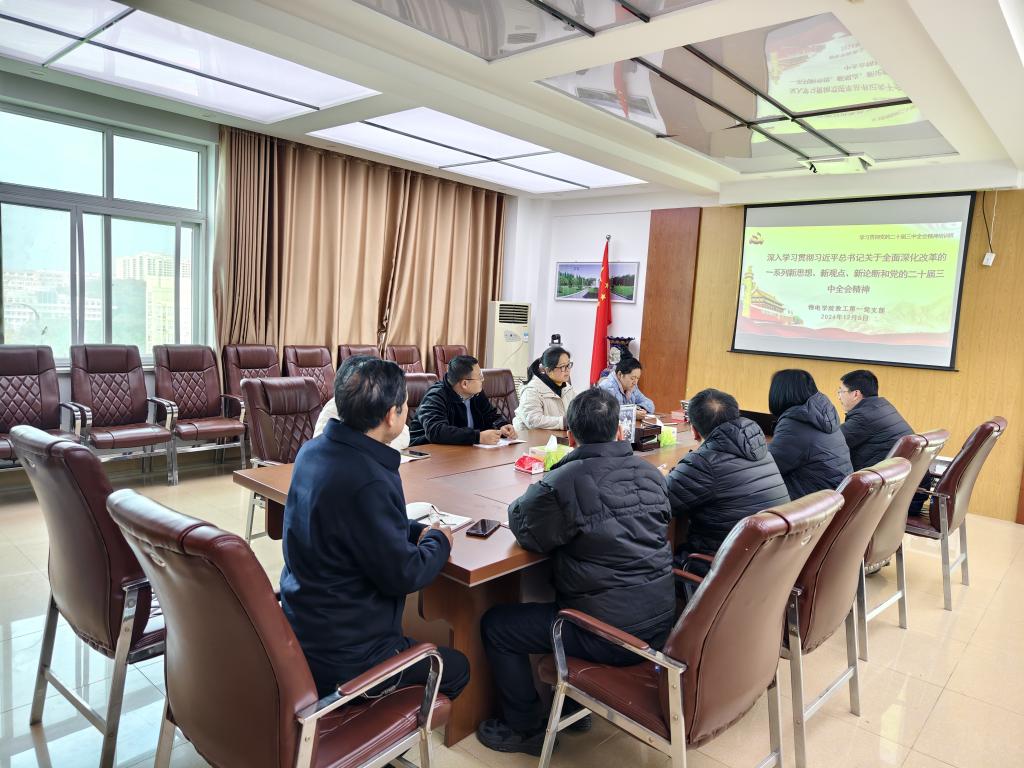 12月6日,学院教工第一党支部在理科楼北楼911开展了“学习贯彻党的二十届三中全会精神”主题党日活动,活动由支部书记陆阳主持。会上,陆阳带领支部党员深入学习了党的二十届三中全会精神,着重学习了《中共中央关于进一步全面深化改革、推进中国式现代化的决定》。陆阳指出,党的二十届三中全会是在以中国式现代化全面推进强国建设、民族复兴伟业的关键时期举行的一次十分重要的会议,支部全体党员应做好自学,要带着使命学、带着责任学、带着问题学,深刻理解把握习近平总书记重要讲话的丰富内涵,切实增强贯彻落实的思想自觉和行动自觉,将学习成果转化为推动工作的强大动力。最后,支部党员一起集中观看了中央党校(国家行政学院)副校长龚维斌教授做的题为《发挥经济体制改革作用,全面推进各项领域改革》的辅导报告。