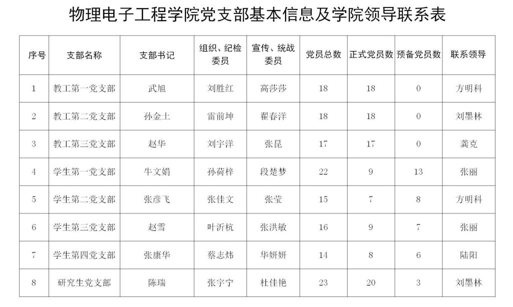 学院党委所属党支部情况