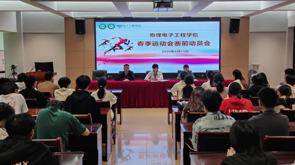 为弘扬奥林匹克精神,激发运动员斗志,强化赛事组织保障。4月14日,我院在理科楼402会议室召开2025年春季运动会赛前动员会。学院党委副书记张丽出席,2023级、2024级学生干部及全体运动员共同参加,会议由牛文娟主持。