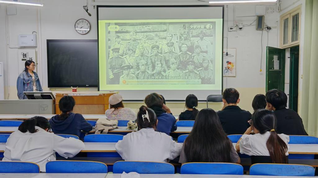 “声音”回望:听史声韵,缅怀英魂。学院组织学生集体聆听历史音频档案,包含抗战时期珍贵原声资料及后人讲述的英雄故事,通过声音的穿透力,让青年学子感受到历史的沉重与民族奋起抗争的呐喊。
