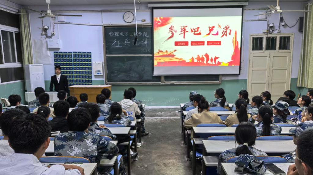 此次宣讲活动作为新生入学教育的关键一环,不仅点燃了新生的报国热情,也为个人发展规划提供了新的思路与选择,深化了国防教育的育人实效。今后,学院将持续完善征兵宣传工作机制,通过常态化宣传与精准动员相结合的方式,引导更多优秀学子投身国防事业,为强国强军贡献青春力量。