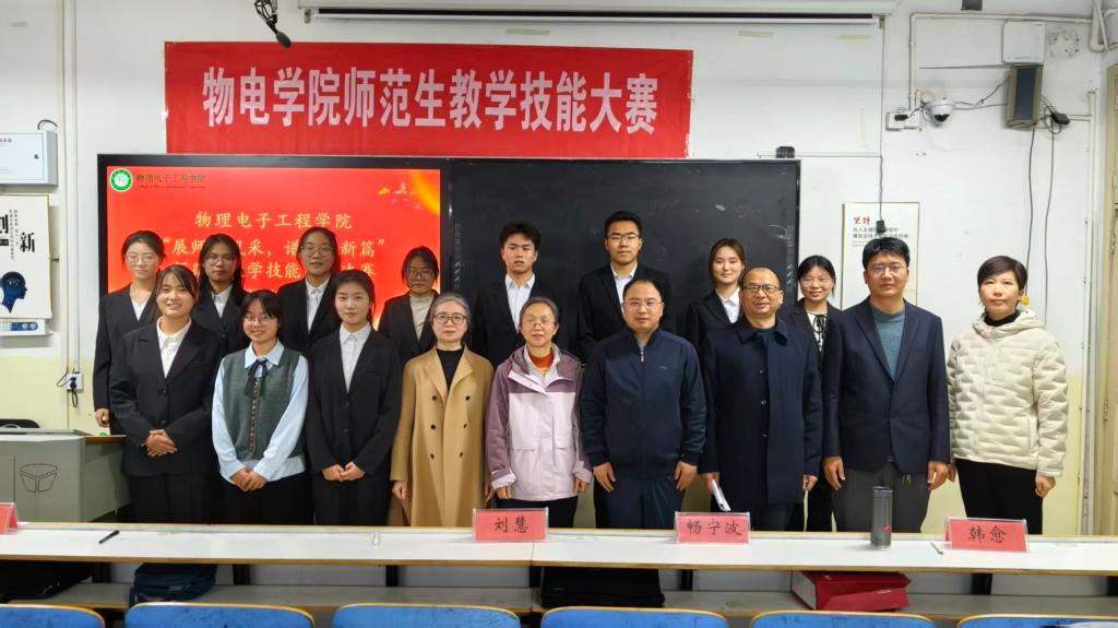 11月30日,我院在教三205举办“展师者风采,谱育人新篇”师范生教学技能大赛决赛。我院党委副书记张丽受邀出席,刘慧、黄文霞、李炳中、畅宁波、韩愈老师担任评委,2024级、2025级物理学专业学生积极参加。