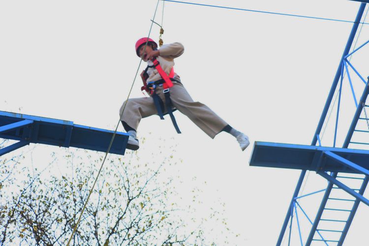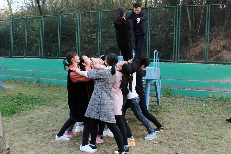 活动准备阶段,学员均分为三组并制定所在队伍名称。活动内容包括“萝卜蹲”“信任背摔”“高空断桥”“穿越电网”等游戏,类型丰富、趣味十足。其中, “高空断桥”极具挑战性,攀爬者在现场指导人员帮助下,装备安全服、安全绳等保护自身安全,并通过跨越、落地等动作穿越八米高断桥完成挑战,队员们相互鼓励,一同克服恐惧。“信任背摔”游戏中,工作人员指导部分队员依次以手搭肩、摆正姿势,确保被摔者安全从平台落下,参与人员间齐心协力、彼此信任,充分展现了当代大学生善于团结合作,敢于挑战自我、超越自我的独特魅力。期间,工作人员耐心指导、仔细讲解,时刻关注学子安全,其认真负责、和蔼可亲的态度赢得在场师生一致好评。游戏结束,组内成员相互交流并浅谈自身感悟,现场气氛热烈和谐。