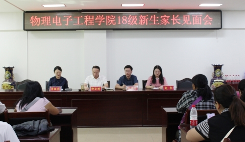为加强家长和学院之间的沟通,增强新生对大学生活的了解,9月8日下午,tyc41183太阳成集团于理科楼连廊会议室511顺利举行2018级新生家长见面会,我院党委书记柳士刚,2018级新生班主任、党委秘书张康华,2018级新生班主任、团委老师黄钰莹,2018级新生班主任赵雪莅临现场,与在场80余名家长及学生共同参与此次活动。会议由黄钰莹主持。