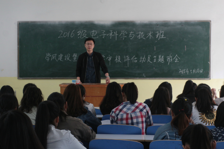 为充分发挥学生“自我教育、自我管理、自我服务、自我监督”作用,以良好的精神面貌迎接本科教学审核评估工作,推进学校高水平师范大学建设,5月8日至10日,我院各班级相继于教二、教三教室开展学风建设暨迎接教学审核评估动员主题班会。会议由各班辅导员主持。