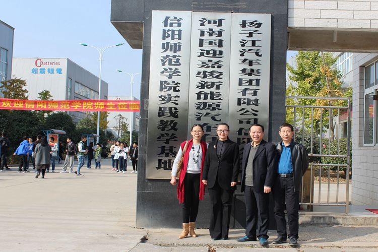 国迎嘉骏公司董事长曾增女士对我院师生的到来表示热烈欢迎,并安排公司中层干部带领领导老师和同学们分别参观研发中心、锂电池生产车间、组装车间,喷漆车间和充电柜零部件加工车间,对同学们提出的疑问进行耐心细致的解答。柳士刚一行对于公司的快速发展表示祝贺,希望以后通过多种形式的交流与合作促进产学研协同发展。他同时也寄语2017级新生,通过此次见习,明确学习目标,珍惜大学时光,努力提升专业素质,为今后的人生发展打下坚实基础。最后,双方在信阳师范学院实践教学基地标牌前合影留念。