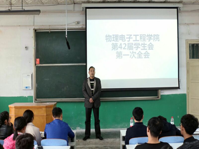 会议伊始,主席团成员依次发言。他们对我院上学期取得的优异成绩表示肯定,并对各自分管部门的主要工作职责与近期工作安排做详细介绍。学生会主席龚佳全在发言中指出,各部门部长及干事应时刻保持认真的工作态度,明确自己肩负的责任,始终保持工作热情,戒骄戒躁,努力为第四十二届学生会再创辉煌。黄钰莹老师结合自身团学工作经验,从“个人”和“工作”两个方面与现场学子进行交流,并以问题“你为什么要加入学生会”为切入点与学子们展开互动。黄钰莹围绕宣传要先行、认真完成常规性活动、学干为我院团学工作献言献策三方面对学子们提出建议与要求,希望认真完成学院领导下达的各项任务,学会总结反思,发展创新思维,积极为我院团学工作更好、更快地发展添砖加瓦,共同营造物电学院积极向上的团学氛围。最后李刚致辞,他首先代表我院党委行政对2017级新生加入学生会表示热烈欢迎,并寄语学子们确立自身定位,明确责任目标,强化“公仆意识”,做好带动作用,全心全意为同学们服务,为我院学生会取得更优异的成绩戮力前行。