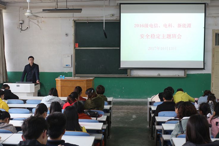 13日至20日,我院各班级分别于教二、教三楼召开安全稳定主题班会。会上,辅导员结合身边的真实案例,通过列举我国发生的暴乱事件,围绕交通安全、饮食卫生安全、人身安全、自我保护等方面问题对学子们进行强化教育,提醒其提高自我保护意识。他们强调,学生安全、稳定、和谐的学习环境来之不易,靠的是学校领导老师与学子们的共同努力,值此党的十九大召开之际,发生大规模校园安全问题,势必会对学生生活产生负面影响,希望学子们认真履行学生管理规定,遵守校规校纪,在十九大召开期间,请假销假应提前告知家长与老师,严格履行手续。最后,各辅导员寄语学子们提高警惕,共同维护十九大召开前夕校园生活的安全稳定。