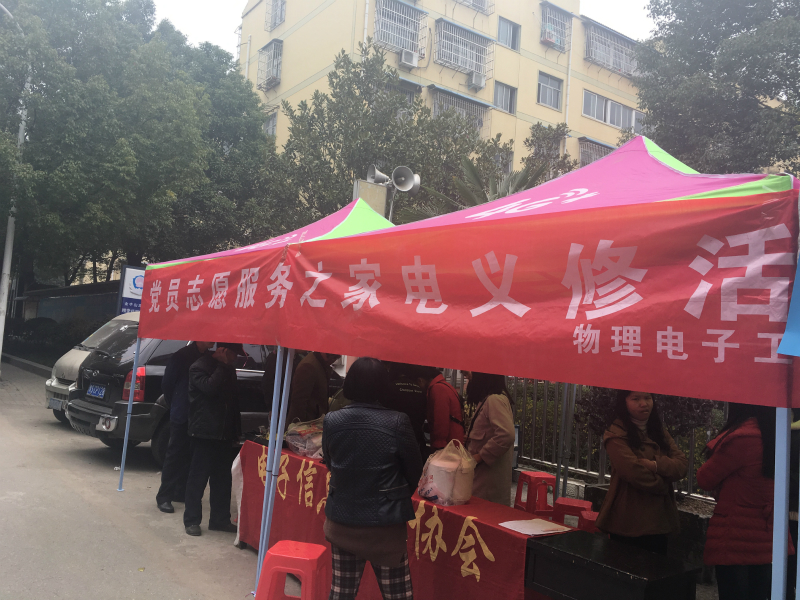 为响应校团委雷锋月的号召,提高大学生深入基层、服务社会的能力,3月11日,我院电子信息技术协会在飨堂社区举行“义务维修家电”活动。