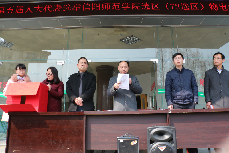 柳士刚首先向师生介绍了我校参选人大代表的候选人的基本情况以及人大选举工作的重要性,希望大家依法行使选举权利,做好选举工作。然后介绍了本次选举工作的监票员、计票员以及唱票员名单,向师生宣读本次选举的规则,即采取不记名投票方式,实行差额选举,从两名人大代表候选人中选举产生一名人大代表。最后,物电学院选举小组成员清点选民人数,按照监票员、计票员、唱票员、教职工、研究生、本科生的顺序依次投出神圣的一票。会后,选举小组成员统一进行统计工作,并将选票结果报送学校选举委员会。