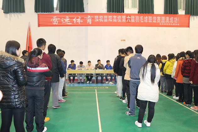 为响应十八大的有关号召,传递正能量,增强同学们的身体素质,激发大家对运动的热情,丰富大学生精神文化生活,促进校园文化建设,11月23日,由信阳师范学院校团委主办、我院羽毛球协会承办的“信阳市高校羽毛球联谊赛”在校体育馆顺利举行。学院团总支书记刘华超老师受邀参加了此次活动,来自信阳师院、华锐学院、农林学院、信阳职业技术学院四所高校的代表队参加了此次比赛。