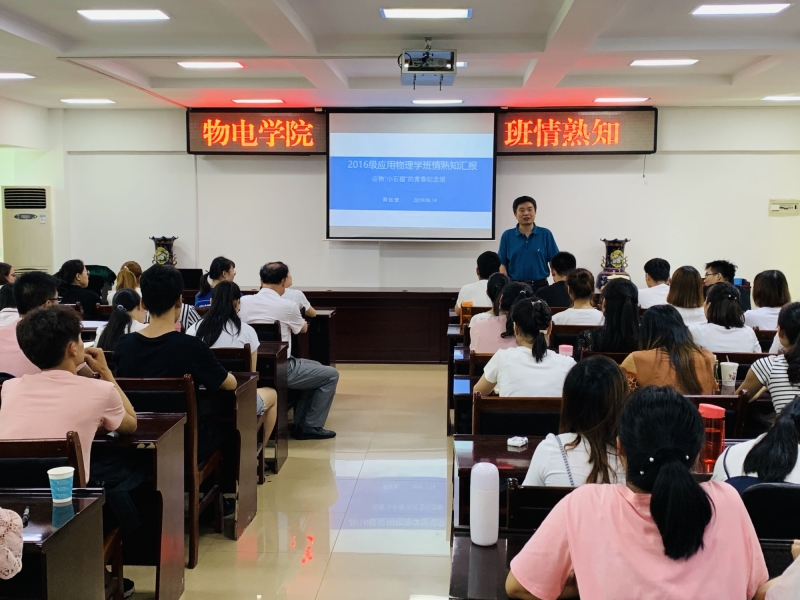 6月14日上午,副校长余本海到物电学院检查指导班情熟知工作,学生处副处长陈明、赵晨,物电学院党委书记柳士刚,学校21个学院的辅导员代表参加了检查。