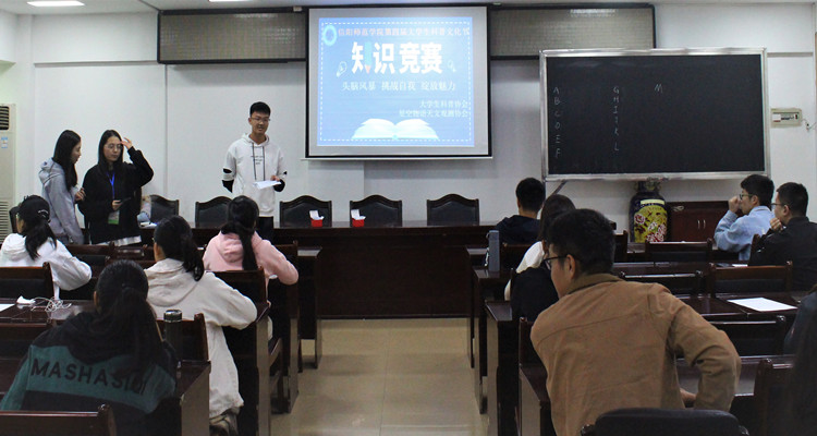 为引导大学生树立科学思想、科学态度,增强其创新意识和实践能力,11月16日上午,我校第四届大学生科普文化节知识竞赛于理科楼511会议室顺利开展。此次活动由我校团委、科学技术协会主办,我院大学生科普协会、星空物语天文观测协会联合承办。