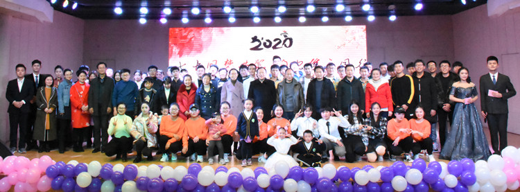 柳士刚、涂友超通过MV的形式为元旦晚会致辞,总结在即将过去的一年我院取得的各项成就,展望2020年再创辉煌,并向在场师生表达了真挚的新年祝福。晚会分为“冬夜舞韶华”和“青春待明朝”两个篇章,汇集舞蹈、歌曲、武术、小品、相声多种表演形式于一体,为现场观众带来一场精彩绝伦的视听盛宴。晚会在动感炫酷的开场舞《SHAKE IT》中拉开序幕,震撼人心的音乐、洋溢着青春活力的舞姿、积极向上的青春气质感染着在场师生。武术表演《棍影乾坤》将博大精深的传统中华武术与时尚新潮的现代音乐舞蹈融合,尽显中华武术之美。小品《你的模样》《手机综合症》《安全演习》连番上演,其主题以小见大,情节引人入胜,表演中暗含人间真情、世间真理,完美诠释喜剧的真正含义,告诉学子们要立足当下、砥砺前行,在奋斗中绽放青春光芒。《你的答案》《想要唱歌给你听》等一首首流行歌曲瞬间点燃观众的热情。相声《满腹经纶》语言特色鲜明,意蕴丰富深刻,将中西方文化完美结合,以幽默诙谐的语言强调文化的重要性,令人捧腹之余,引人深思。晚会在2019级班团带来的歌舞串烧《辣舞小天使》中落下帷幕,整场晚会激情四溢、高潮迭起,期间穿插抽奖环节,充分调动了现场气氛。晚会结束后,全体领导老师、演员及工作人员一同合影留念。