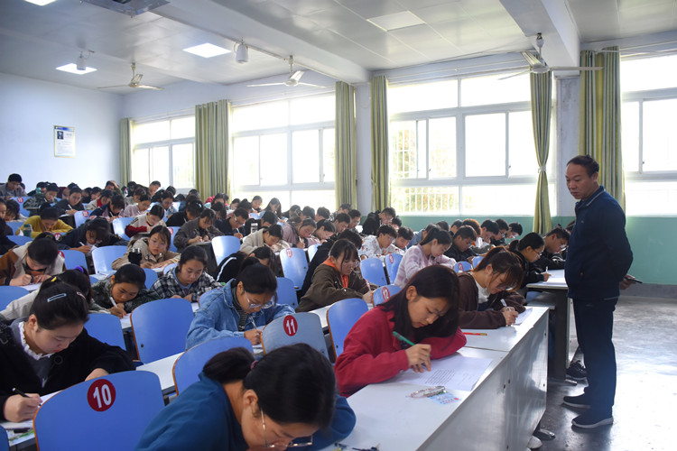 本次考试试题以高考内容为基点,涉及语文和英语两个学科,考试时间为三个小时,以笔试的形式进行考核。考试开始前,监考员向在座新生强调了考试规则,严格要求学子们遵守考场纪律,独立完成考试,并指明会对违反考试纪律的考生进行严肃处置。考试在紧张而有序的氛围中进行,学子们严谨作答,态度端正,自觉遵守考场纪律,监考员一丝不苟,认真做好核对考生信息工作。期间,柳士刚在考场进行多次巡视,避免作弊行为发生,保证考试的公平公正。考试结束后,学子们依次上交考卷,有序离开考场。