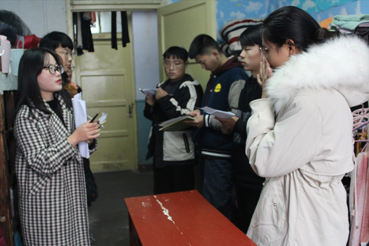 为营造卫生整洁、和谐友爱的寝室环境,丰富寝室绿色文化,11月28日,我院团总支学生会劳卫部在新生寝室楼开展绿色家园评选活动,为保证活动的公平,劳卫部成员作为评委对此次活动进行打分。