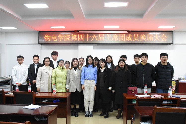 为进一步提高学生会服务水平,12月27日,我院在理科楼连廊502会议室顺利举办第四十六届学生会主席团换届大会,我院团委老师黄钰莹,牛文娟莅临现场,现任学生会主席团成员及各部门成员共同参加此次活动。会议由办公室主任李雨皓主持。