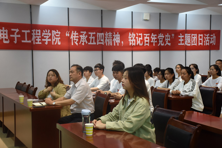 我院党委副书记李刚指出,在建党100周年的重要时刻,在“五四”运动102周年的关键点,在全团开展“学党史、强信念、跟党走”学习教育活动中,开展“传承五四精神,铭记百年党史”主题团日活动,对继续发扬五四精神,教育引导物电学生们要从党史学习中激发信仰、获得启发、汲取力量,不断坚定‘四个自信’,不断增强做中国人的志气、骨气、底气,树立为祖国为人民永久奋斗、赤诚奉献的坚定理想。要锤炼品德,自觉树立和践行社会主义核心价值观,自觉用中华优秀传统文化、红色文化、社会主义先进文化培根铸魂。要勇于创新,深刻理解把握时代潮流和国家需要,敢为人先、敢于突破,以聪明才智贡献国家,要实学实干,脚踏实地、埋头苦干,孜孜不倦,在攀登知识高峰中追求卓越,在肩负时代重任时行胜于言,以切实行动和优异成绩迎接建党100周年。