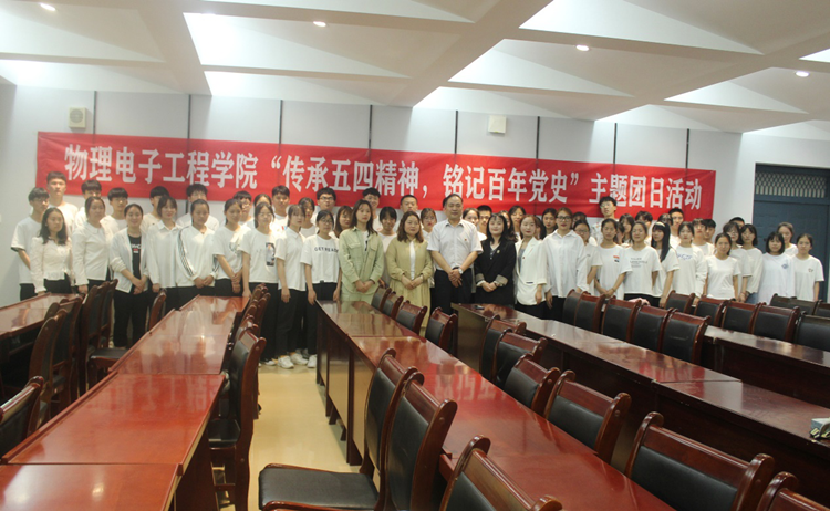 为加强爱国主义教育,弘扬民族精神,5月12日下午我院于理科楼四楼会议室举办“传承五四精神,铭记百年党史”主题团日活动。校团委宣传部部长雷玲应邀出席活动。物电学院党委副书记李刚、团委老师牛文娟、化工化学学院团委副书记邓雪婉以及20级物理学一班全体同学共同参加了活动。此次活动由物电学院团委副书记李诗吟主持,班级团支部书记韩文琪主讲。