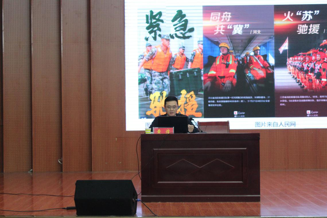 黄煌以“伟大建党精神——在河南防汛抗疫中的生动体现”为主题,从伟大建党精神产生的历史背景、伟大建党精神的提出及理论内涵及伟大建党精神在河南防汛抗议中的生动体现三个方面,对伟大建党精神进行了详细解读。以图文并茂的形式生动阐述了伟大建党精神在河南抗洪防疫中“对党忠诚、不负人民”“践行初心、担当使命”“不怕牺牲、英勇斗争”“坚持真理、坚守理想”“人性关辉和民族精神”的鲜明体现。