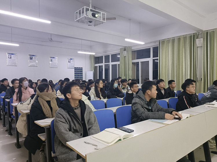 徐庚琛通过对国家政策的详细解读,向同学们介绍了大学生参军入伍的优惠政策以及参军对个人成长的帮助。接着,他生动地讲述了空军原司令员王海上将和扫雷排爆战士杜富国的英雄事迹,让同学们更加深入地认识军人、了解军人,领会中国军人的坚毅品质和爱国精神。接着,徐庚琛针对于征兵的相关规定、征兵条件、征兵流程等方面作详细介绍,并鼓励同学们积极踊跃参军入伍,磨练意志,携笔从戎,不负韶华。