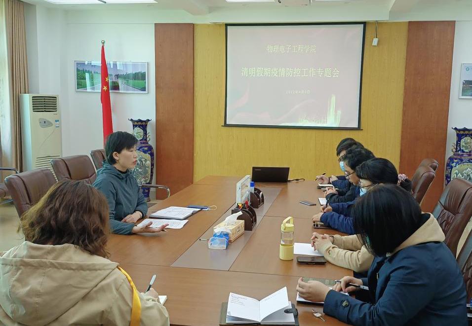强化正面宣导,落实“六会一走访”。4月3日,我院在理科楼911会议室召开清明节假期疫情防控工作专题会。会上,党委副书记张丽对各位班主任在近期疫情防控工作中的辛勤付出给予充分肯定,同时强调清明假期要持续做好疫情防控工作,通过“六会一走访”实现横向到边、纵向到底、上下联动、内外衔接,让思想教育、疫情防控政策传达不留死角,全面筑牢校园疫情防控坚固防线。