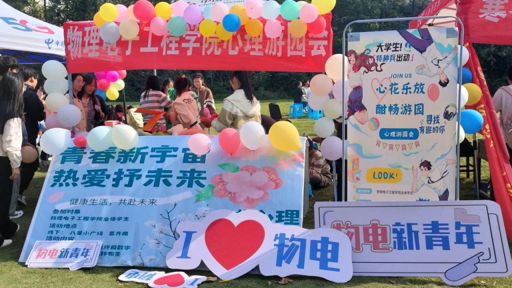 为加强大学生心理健康教育,营造温馨有爱的校园氛围,培养大学生积极乐观、阳光向上的心理状态。10月24日,由我校学生工作部及大学生心理健康教育中心主办、我院学生会心理部承办的“心花乐放,酣畅游园”心理游园会活动在一棵树广场顺利开展,校党委副书记岳宗德、大学生心理健康教育中心主任李贵杰莅临我院活动现场并观摩指导。我院党委副书记张丽,心理专干牛文娟带领同学们积极参与。