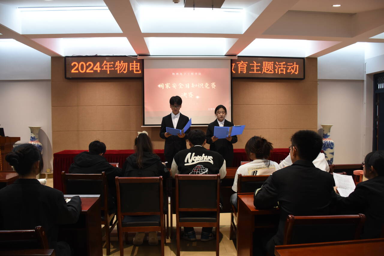 为深入贯彻落实习近平总书记关于总体国家安全观的重要论述,提升青年学生国家安全意识, 4月14日晚,我院大学生科普协会于理科楼连廊402举办2024年国家安全知识竞赛决赛。