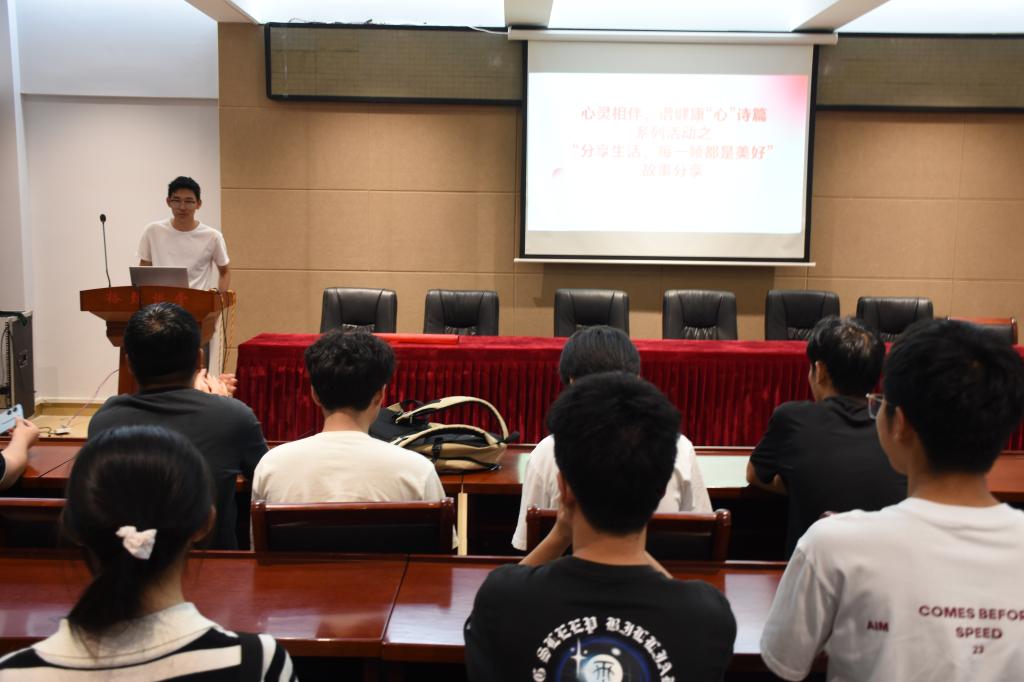 为深化学生心理健康教育,进一步提升学生的心理健康水平,5月14日,我院于理科楼连廊402开展“分享生活,每一帧都是美好”故事分享活动,2023级各班代表参加。