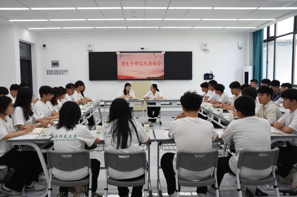 交流启迪智慧,携手共促成长。两院团委老师、学生干部在理工学院教学楼103教室召开学生干部交流座谈会。会上,理工学院团委老师方玉婷致欢迎词,我院团委老师牛文娟简要介绍了我院团学工作的总体情况、工作思路及重要举措。随后,两院学生干部结合工作实际深入展开讨论交流。此次座谈会既加强两院之间学生工作的交流合作,理清各学院团学工作的主要方向,对全面推动两院学生工作高质量发展具有重要意义。