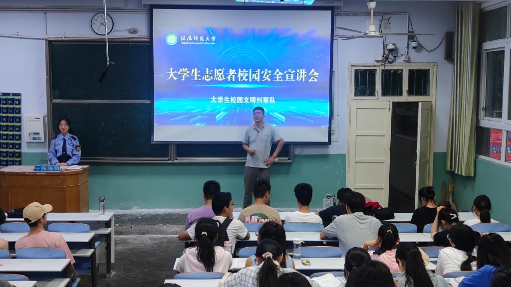 为确保广大师生生命健康和财产安全,进一步强化大学生安全意识,共同维护和谐安全稳定的校园环境。5月23日,我院开展大学生志愿者校园安全宣讲会,此次活动由大学生校园文明纠察队举办,志愿者们围绕消防安全、反电信诈骗和校园交通安全等方面,为同学们带来了一场生动的安全教育课。