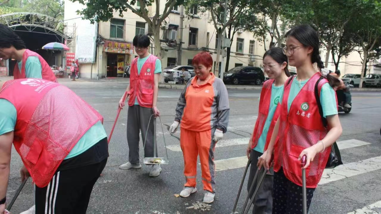 城市净颜,环保同行。志愿者则深入信阳市城市街道,开展“‘卫’爱而行,为爱而行”志愿服务活动,为环卫工人送去了温暖。他们手持扫帚、垃圾袋等清洁工具,对路面、绿化带、公共设施等区域进行打扫清理,垃圾分类投放至垃圾桶内。在环卫工人的指导下,志愿者们积极地完成了马路清扫工作。在帮助她们清扫马路的同时,志愿者们也真切地感受到环卫工人的辛苦。