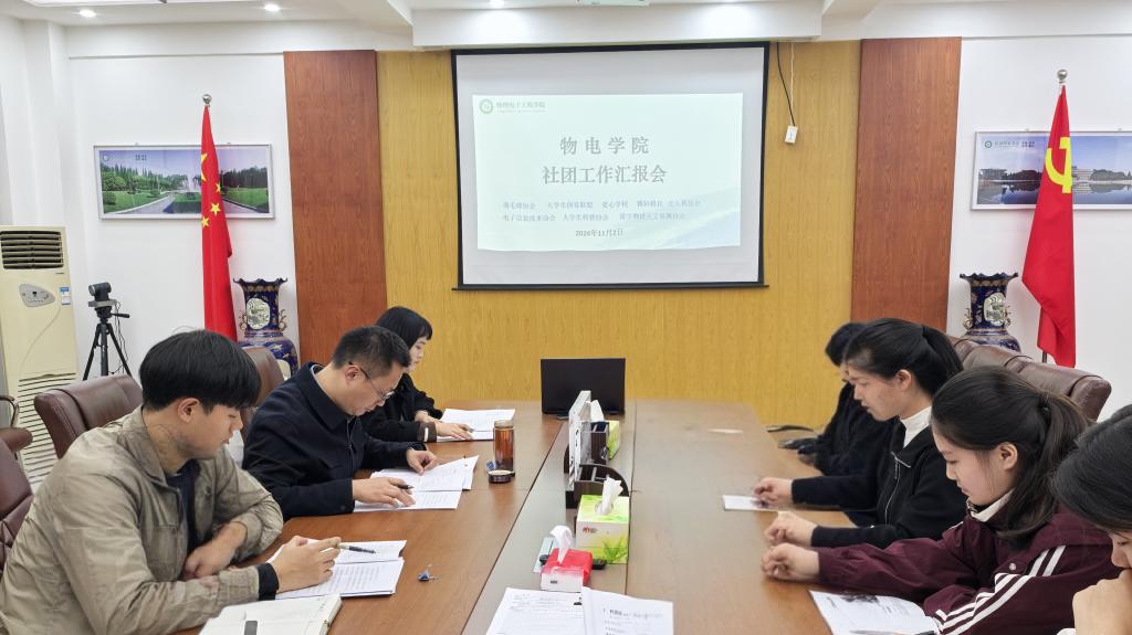 为进一步提高社团活动的质量和影响力,充分发挥社团育人功能,11月2日,我院于理科楼911会议室召开物电学院社团工作汇报会。我院党委书记方明科、社团指导老师牛文娟、学院八大社团负责人参加会议。会议由牛文娟主持。