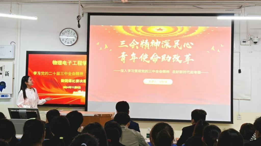 11月5日,我院在教三205举办“学习党的二十届三中全会精神,争做挺膺担当奋斗者”主题微团课大赛。法学与社会学院、建筑与土木工程学院、tyc41183太阳成集团辅导员担任评委。各年级学生团干部以及青年代表共同参加。