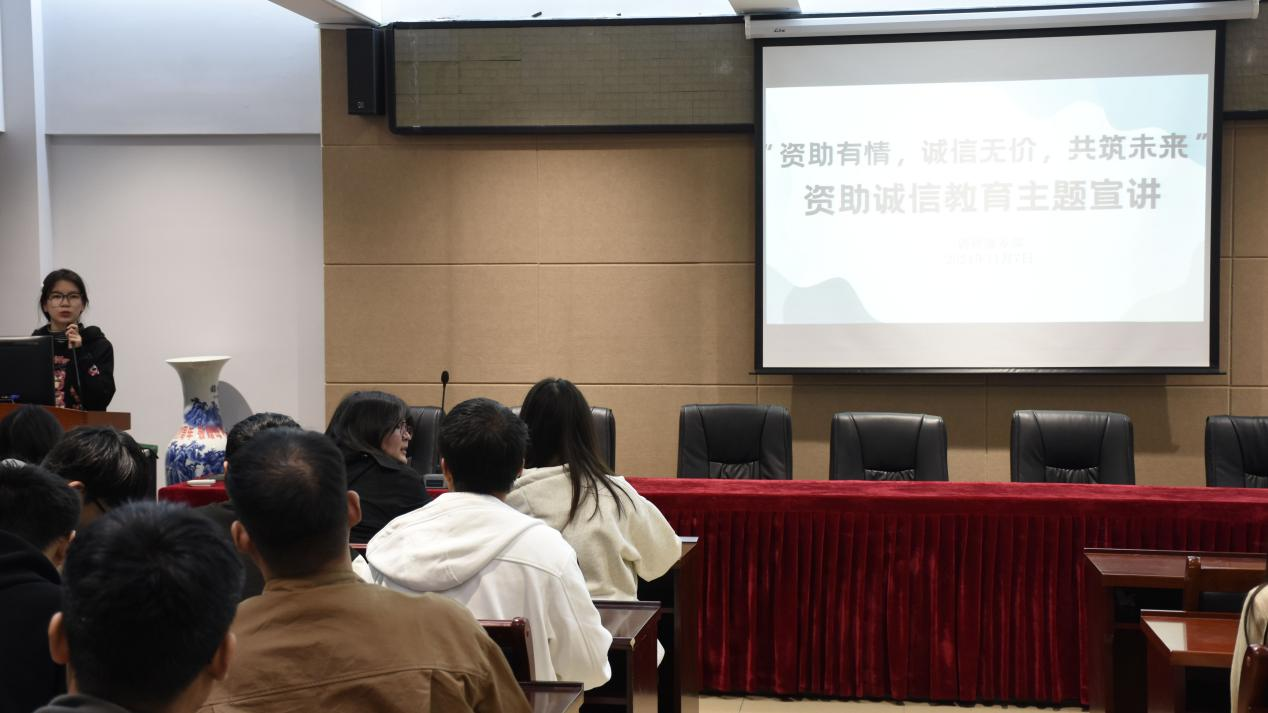为提升学生的诚信意识,引导学生树立正确的世界观、人生观、价值观。11月7日,我院于理科楼402会议室举办“资助有情,诚信无价,共筑未来”资助宣讲活动。本次活动由我院国家励志奖学金获得者2023级曹欣宇、尹玉洁、杨涵亦、许溪、周腾洁五位同学担任宣讲人。2024级学生积极参与。