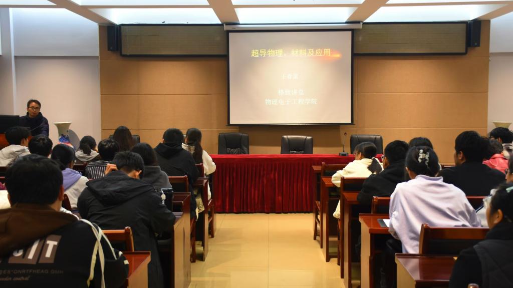 11月14日,我院于理科楼402会议室举办格致论坛第1期—超导物理研究现状及应用。本次讲座由王春雷主讲,2023级与2024级学生积极参加。
