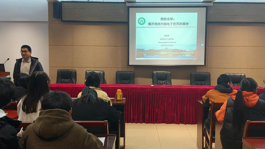 为拓展学生的学术视野并激发其对科学研究的兴趣,11月19日,我院于理科楼402举办格致论坛第3期—“阿秒光学”。本次讲座由翟春洋主讲,2023级与2024级学生积极参加。