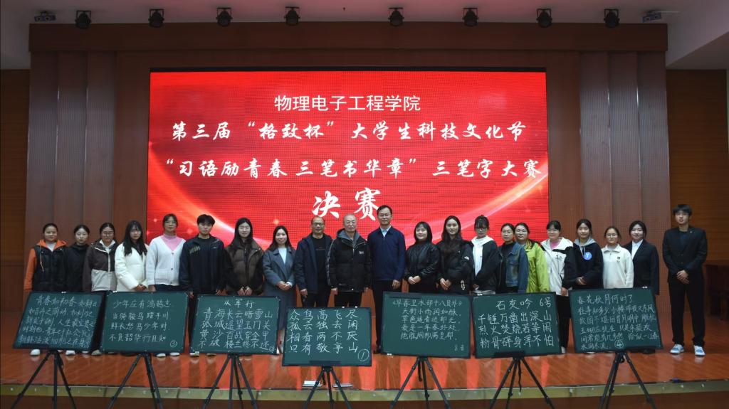 为了进一步提高师范生的书写能力,我院于11月23日在逸夫楼报告厅举办“习语励青春,三笔书华章”三笔字大赛决赛。本次大赛邀请到郭建涛、李炳中、孙金土、唐桂林和牛文娟五位老师担任评委,符家浩和王子笑担任主持人,2023级与2024级学生积极参与。
