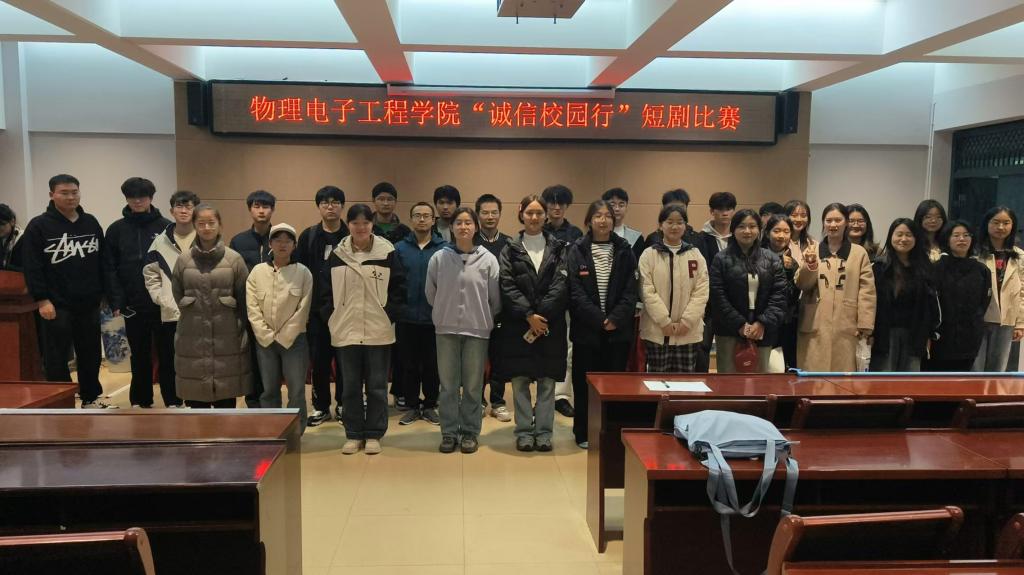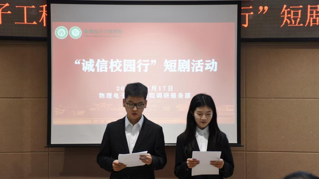 为加强校园诚信文化建设,推进国家助学贷款工作的健康发展。11月17日,我院于理科楼402会议室举办“诚信校园行”短剧比赛。本次活动由学生会主席团成员担任评委,牛鑫帅和范宇丹担任主持人,2023级与2024级学生积极参加。