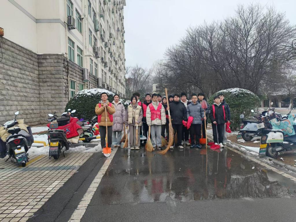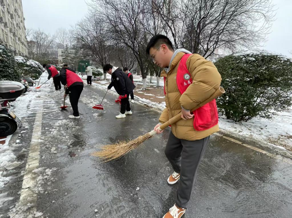 我院青年大学生们在冰雪中用实际行动诠释了青年担当。他们的身影不仅为寒冬增添了暖意,更展现了新时代青年服务社会、勇于奉献的精神风貌。