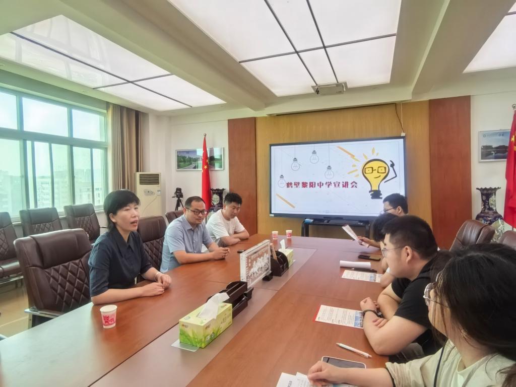 5月16日上午,鹤壁黎阳中学受邀在理科楼911会议室召开专场招聘宣讲会,该学校招聘负责人李主任、我院党委副书记张丽以及部分2025届毕业生参加了此次招聘会。