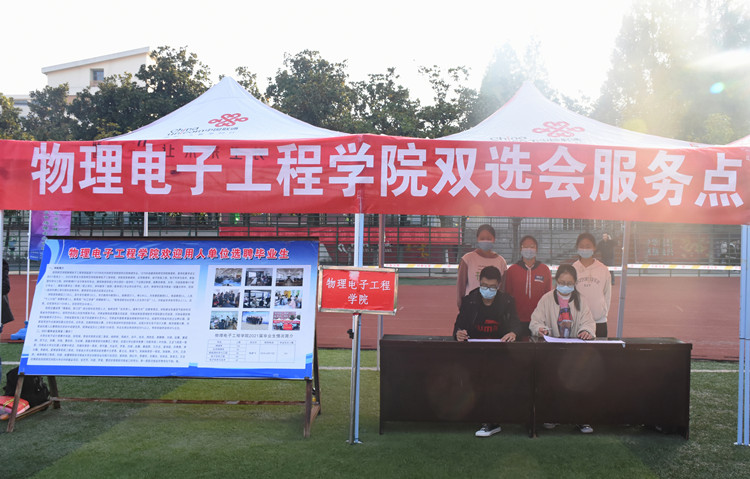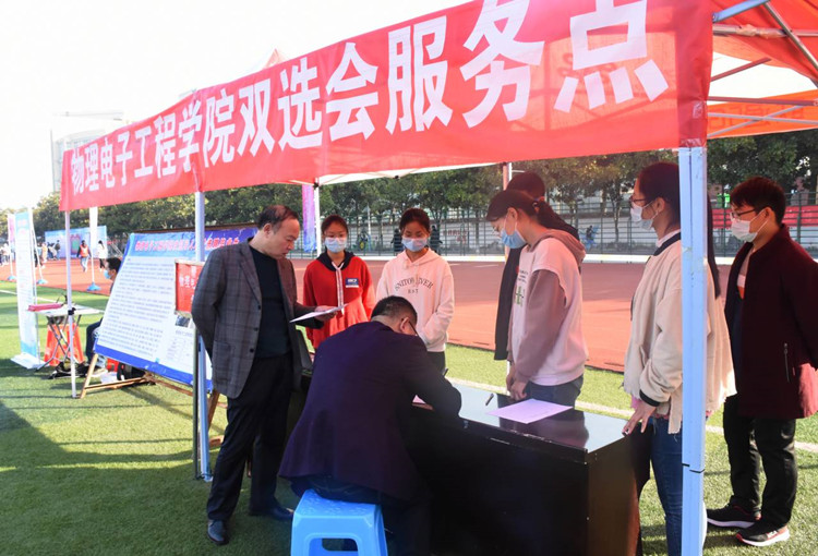 为缓解就业压力,提高毕业生就业水平,11月7日,由河南省教育厅、河南省大中专就业服务中心主办,信阳师范学院承办,信阳农林学院、信阳学院、信阳职业技术学院等联合协办的河南毕业生就业市场豫南分市场暨信阳师范学院2021届毕业生就业冬季双选会于我校西操场顺利开展。我院党委书记柳士刚,思想政治与就业指导教研室主任张彦飞,团委老师杨勇亲临双选会现场对毕业生就业工作进行指导。